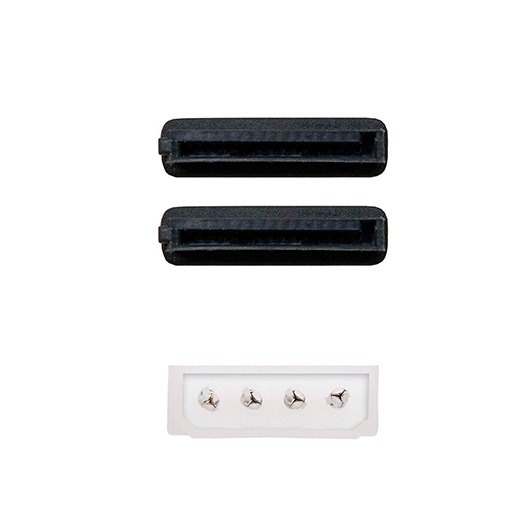 Conector Molex 4 pin macho en un extremo y dos conectores sata alimentación hembra en otro.