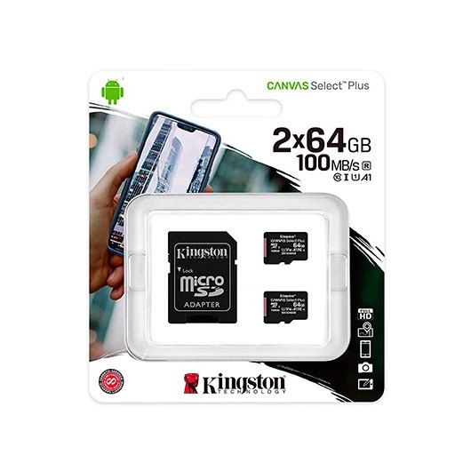 MEM MICRO SDXC 64GB KINGSTON CANVAS SELECT+ADAPT MEM MICRO SDXC 64GB KINGSTON CANVAS SELECT+ADAPT PACK DE 2 UNIDADES CL10 R: 100MB s W:85MB s SDCS2 64GB-2P1A