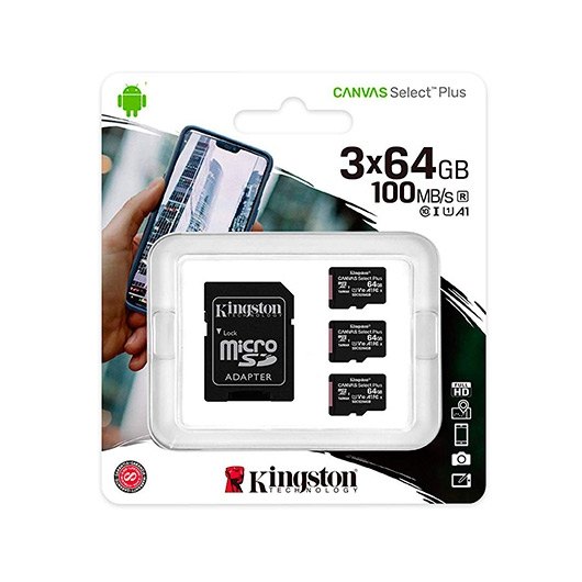 MEM MICRO SDXC 64GB KINGSTON CANVAS SELECT+ADAPT MEM MICRO SDXC 64GB KINGSTON CANVAS SELECT+ADAPT PACK DE 3 UNIDADES CL10 R: 100MB s W:85MB s SDCS2 64GB-3P1A